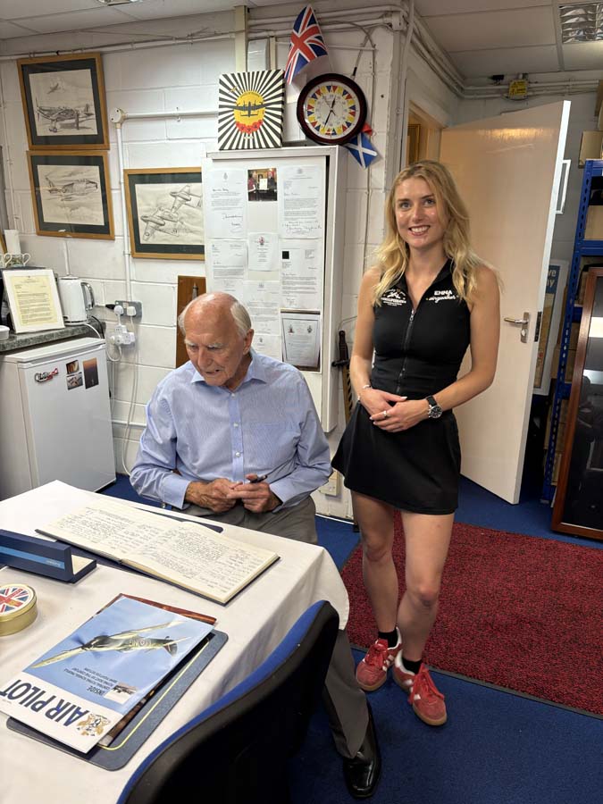 Since early 2024, Emma has also been an Ambassador for Pooleys, the well-known aviation equipment provider. The Ambassador Programme brings together aviation enthusiasts from all backgrounds and Emma has loved the sense of community, motivation, and opportunity it has given her. This year at Eastbourne, Emma and our Display Pilot, Dave, had the pleasure of meeting Robert Pooley, the founder of the company, whose aviation legacy began after leaving the RAF in 1957.